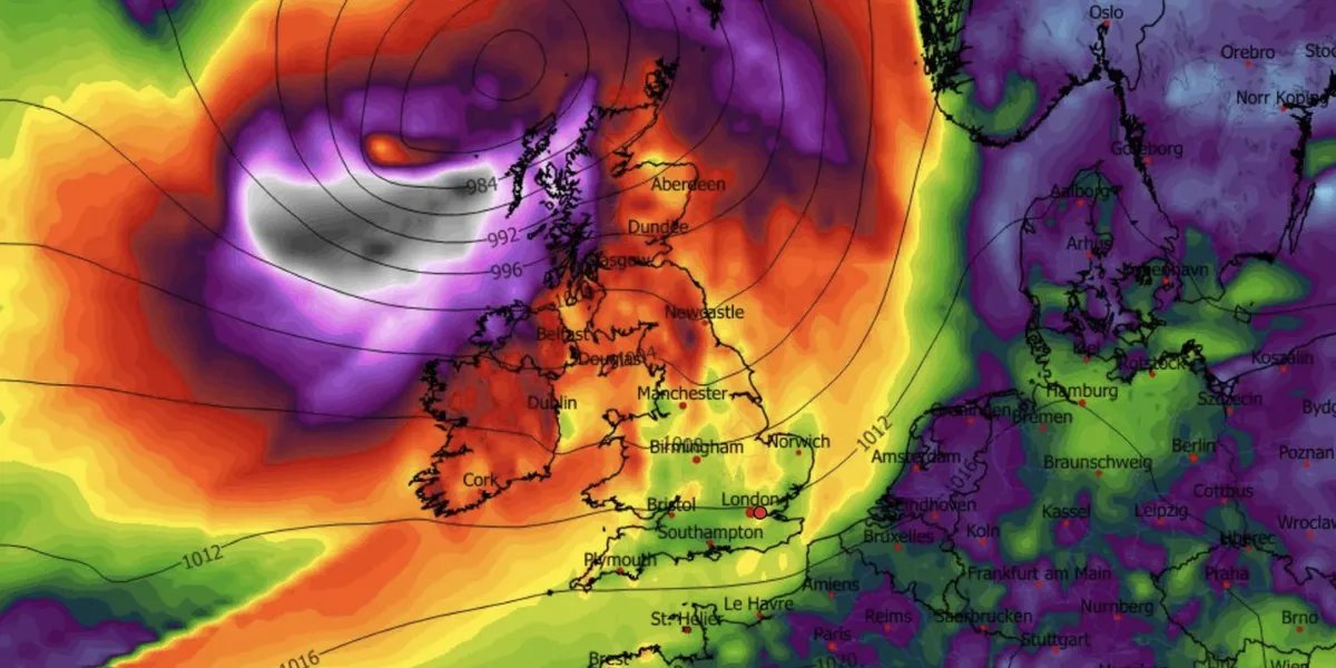 Uma célula profunda de baixa pressão rumo ao Reino Unido no fim de semana pode chegar com chuvas torrenciais e tempestades.