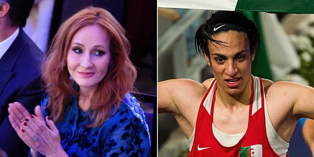 JK Rowling conquistou a vitória depois que as Olimpíadas proibiram atletas transexuais de competir em eventos femininos – antes de derrotar a boxeadora argelina Imane Khelif.