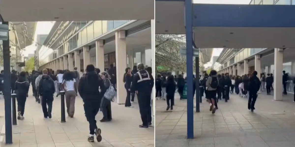 Imagens compartilhadas nas redes sociais mostraram um grande grupo de jovens vestindo agasalhos e bolas se enfrentando do lado de fora do shopping Midsummer Place.