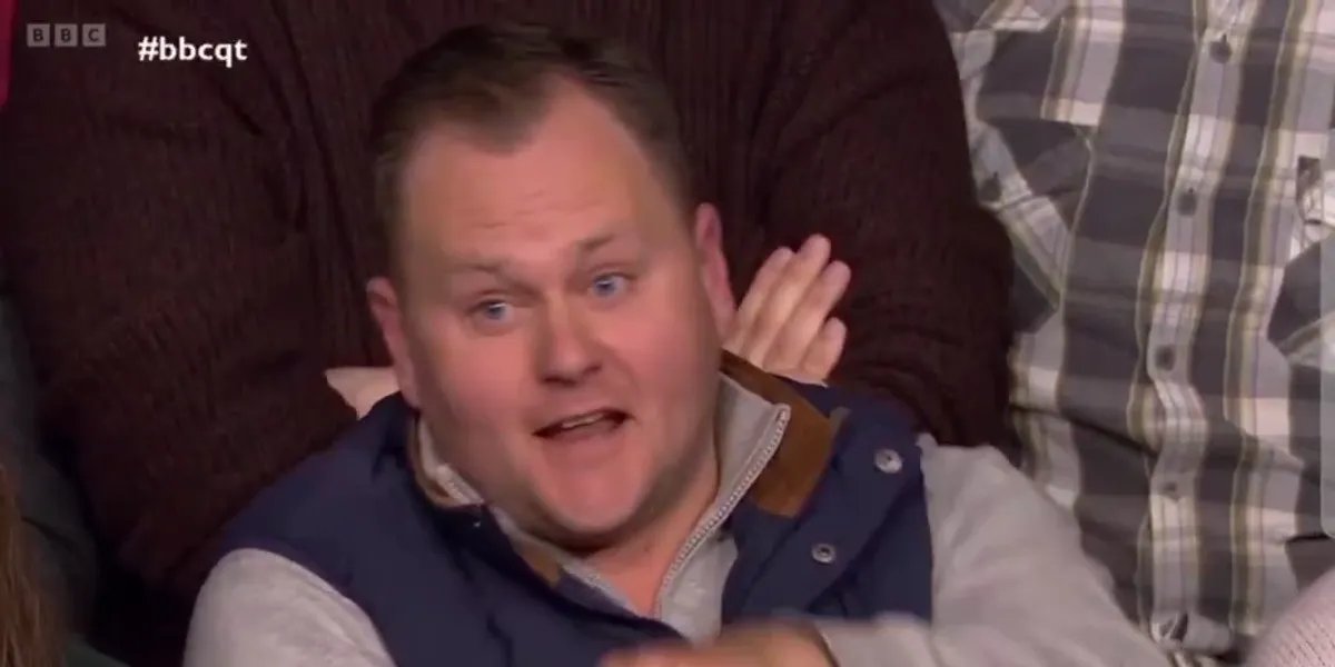 Este é o momento em que uma audiência da BBC News Hour aplaudiu depois de um membro da audiência ter alertado que o Partido Verde, de extrema-esquerda, era um perigo para a sociedade.