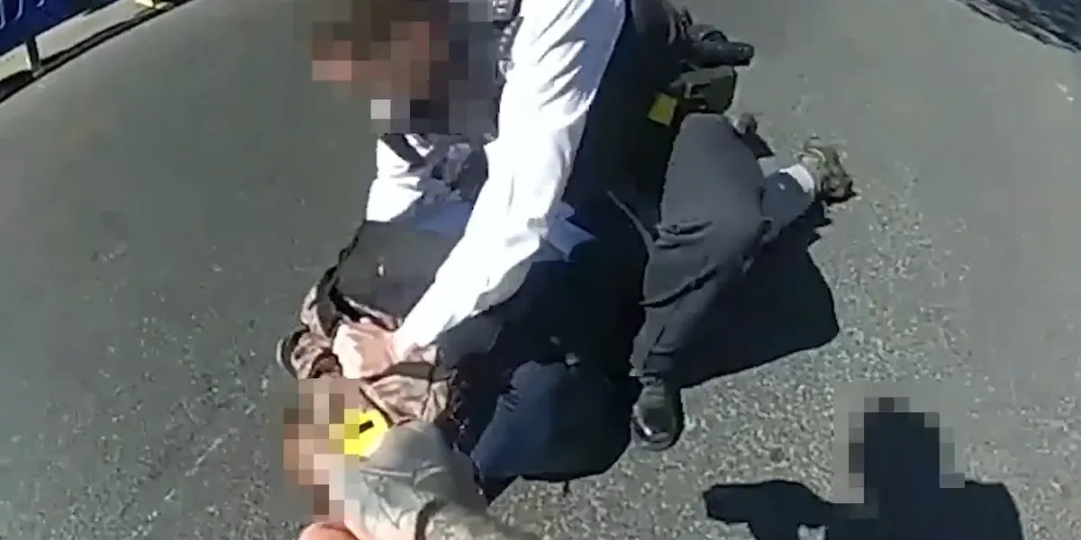 O suspeito teria tentado esfaquear os policiais e foi esfaqueado antes de ser preso.